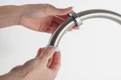 - Slide the silver locking nut over your tap spout and align the filter base with the adaptor